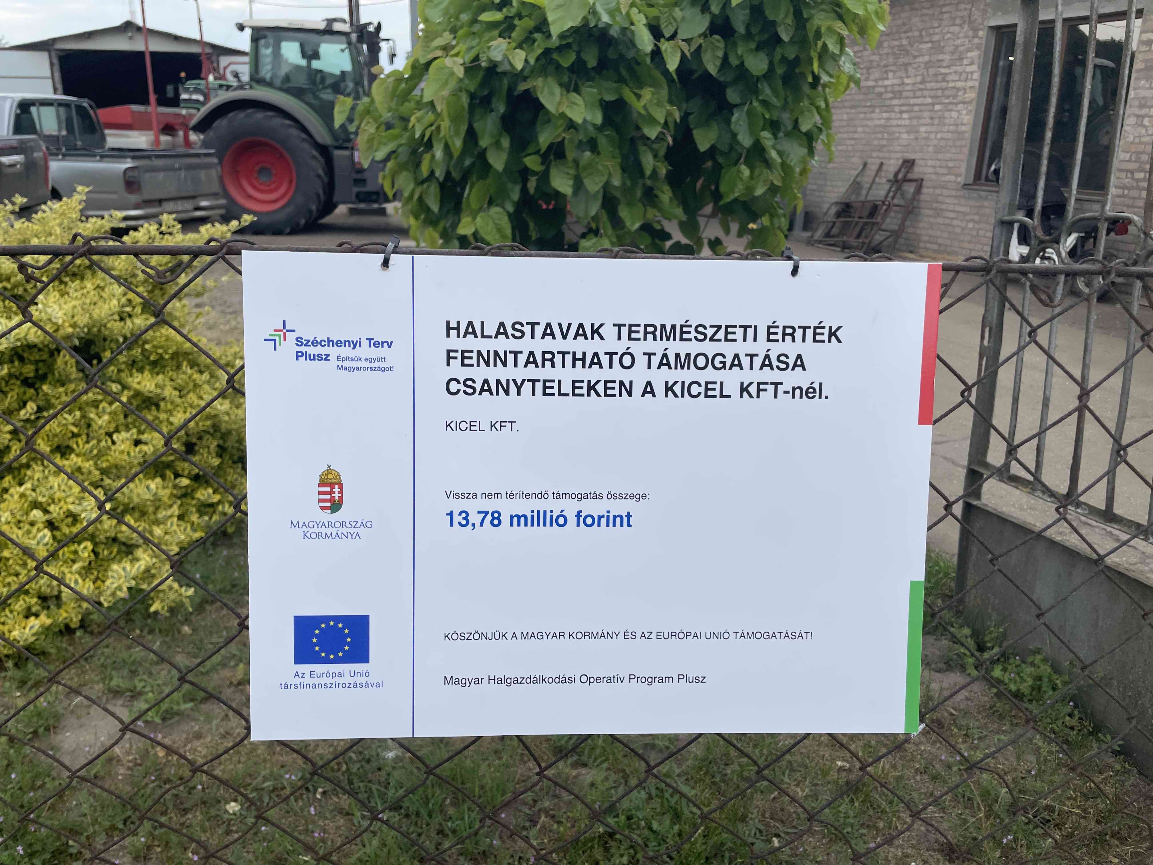 HALASTAVAK TERMÉSZETI ÉRTÉK FENNTARTHATÓ TÁMOGATÁSA CSANYTELEKEN A KICEL KFT-nél. |